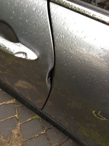 mir ist was doofes passiert, beim Aussteigen hab ich vergessen die Handbremse anzuziehen und der Wagen ist ein Stück nach hinten grollt, Ergebnis könnt ihr dem Bild entnehmen