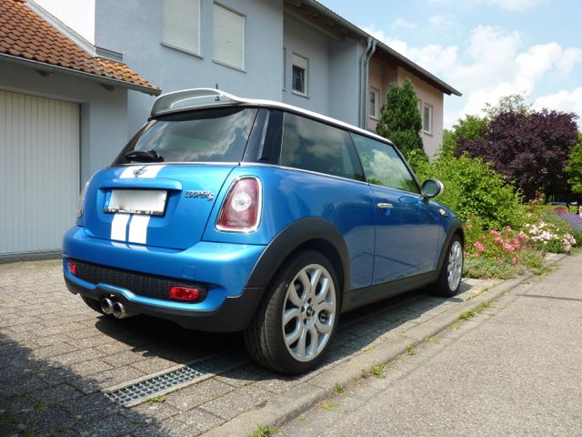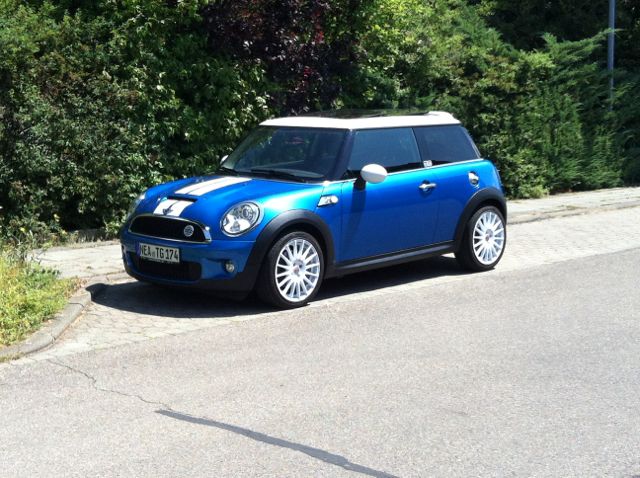 mein Name ist Tim und ich bin seit Ende letzes Jahres stolzer Besitzer eines Mini Cooper S. Nachdem ich jetzt mit meinem Mini hier schon ein paar Monate unterwegs bin dachte ich wird es Zeit einen eigenen Showroom zu erstellen. Der Mini ist mein erstes Auto, er ist Baujahr 2009 und seit Ende letzes Jahres in meinem Besitz. Die Farbe ist Laser Blue Metallic mit weißen Sportstripes. Was bis jetzt verändert wurde ist die Antenne gewechselt gegen die originale Sportantenne, Innenspiegelkappe Union Jack, die Standlichter wurden gegen Phillips Blue Vision getauscht sowie die Runflatreifen gegen die Hankook Ventus getauscht. Fährt sich viel viel besser