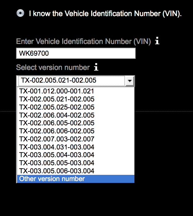 Eigentlich sollte die Version TX-003 usw installierbar sein, weil dies eine Übersicht der Softwareversionen ist, die auf dem Gerät zu der Fahrgestellnummer WK69700 installierbar sein sollen.