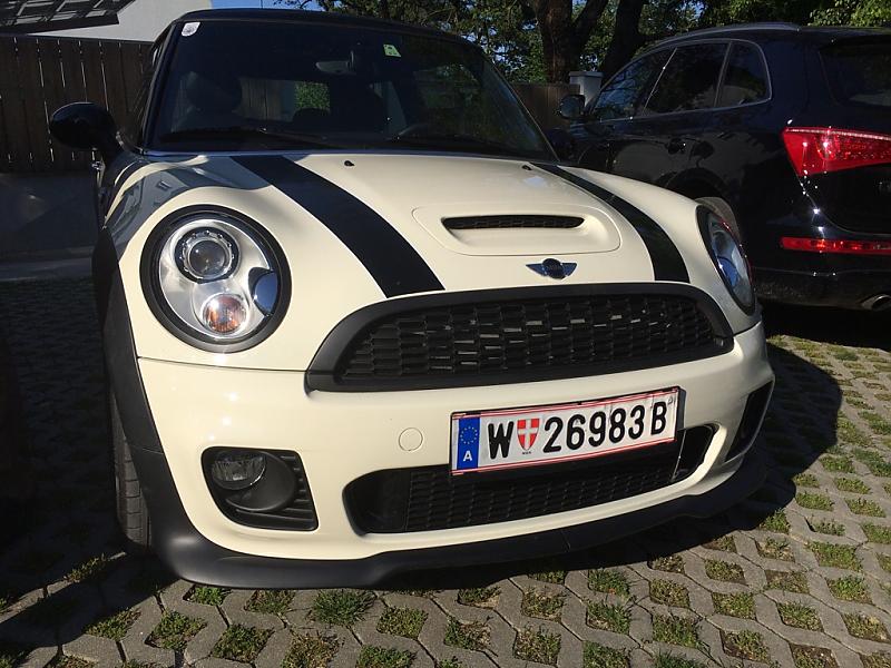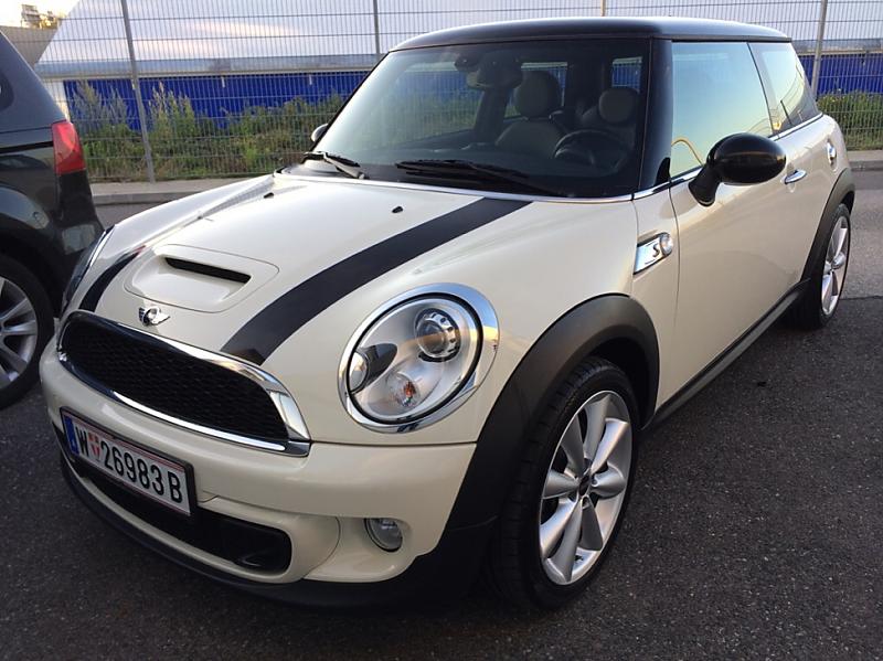 Habe mich ja schon vorgestellt und werd euch nun meinen Mini mit euch teilen doch zuvor noch ein paar Infos zu mir. Ich heisse Rupert und komme aus Wien. Bin 19 Jahre alt und habe im August 2013 meinen Mini Cooper S bekommen. Er ist pepper white und hat zwei schwarze Streifen auf der Motorhaube. Von innen ist er eigentlich ganz normal. Er hat die Sportsitze in schwarzem Leder und sonst ist eigentlich alles andere auch in Schwarz. Ich habe leider nicht das Navi aber ansonst ist er voll ausgestattet. Ich habe/hatte so einiges mit dem Flitzer vor: