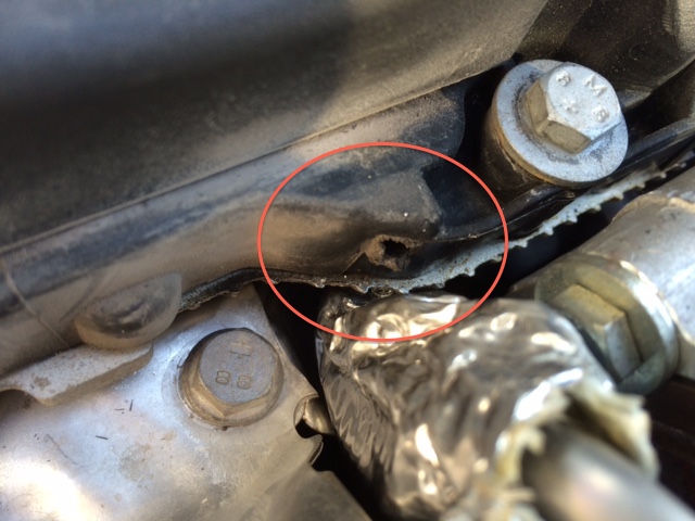 ein Freund von mir fand eine (meiner Meinung nach) komische Stelle am oberen Teil des Motors. Dort ist wie auf den Fotos zu erkennen ein kleines Loch. Da dieses nicht gerade nützlich aussieht stellt sich mir die Frage.. wo kommt das her und ist das normal?! eek!