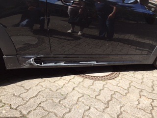 mir ist heute etwas ganz blödes passiert,ich habe beim Abbiegen einen flachen großen Stein übersehen der meine komplette untere außen Seite der Türschwelle zerkratzt hat.