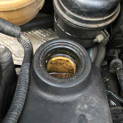 Ich meine, dass der Ölverbrauch auch höher geworden ist. Und was ich sehe, wenn ich in den Ölansaugstutzen schaue (siehe Bild) beunruhigt mich auch.