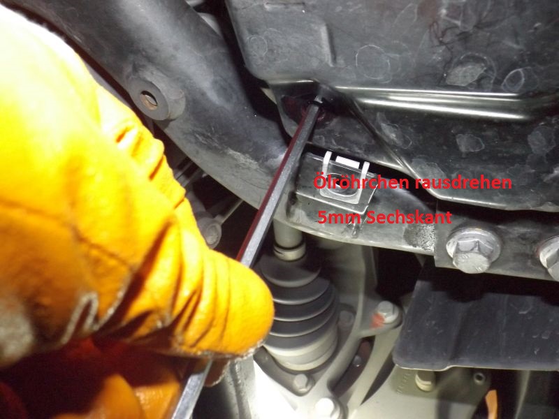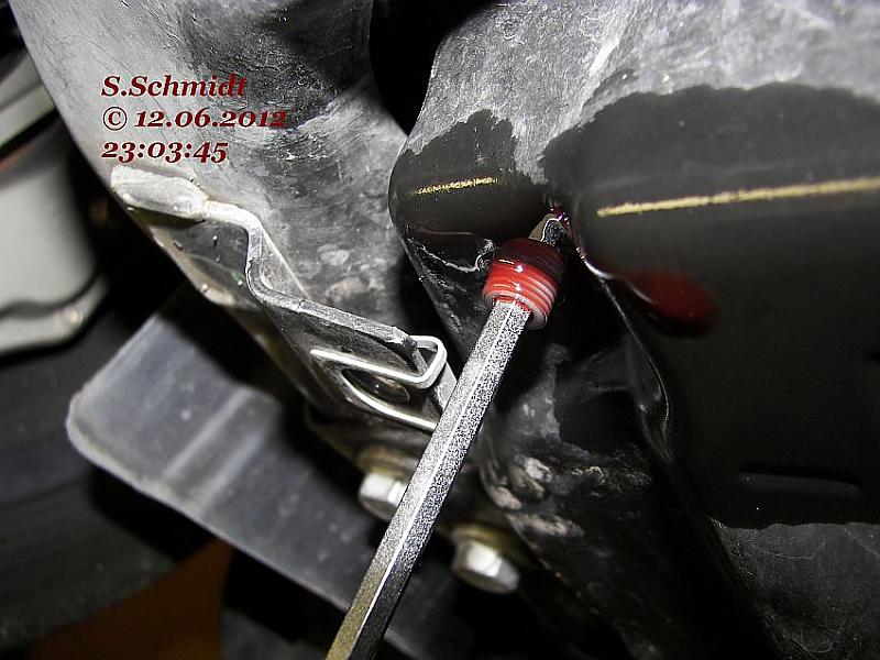 Als ich meinen Fehler bemerkt habe habe ich die Schraube schnell wider zugedreht und vermute, dass fast 0,5 bis 1 Liter aus dem Automatikgetriebe raus sind.