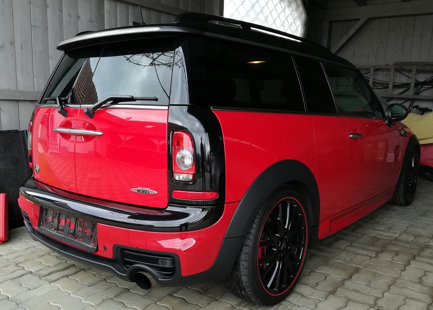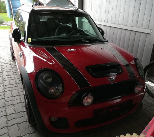 Es handelt sich hier um einen R55 Clubman JCW Bj. 2009. Bis auf eine dezente Tieferlegung ist der Wagen original. Ursprünglich wollten wir einen ganz normalen Cooper. Und irgendwie ist dann alles eskaliert und wir haben uns in diesen schwarz/roten Rabauken verliebt....wir sahen ihn live und dachten scheiss drauf, man lebt nur einmal und wir wollen DIESEN.