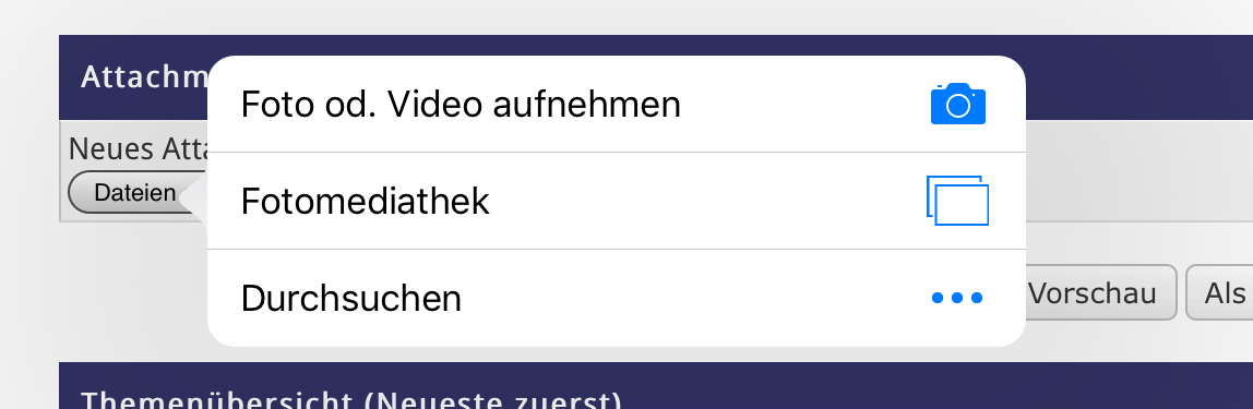 2. Im folgenden Fenster bekommt ihr die die möglichen Bild-/Attachment-Quellen auf euren Endgerät angezeigt: