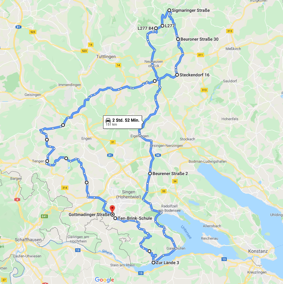 Als Treffpunkt bzw. Ende der Tour habe ich meinen Heimatort Rielasingen gewählt.