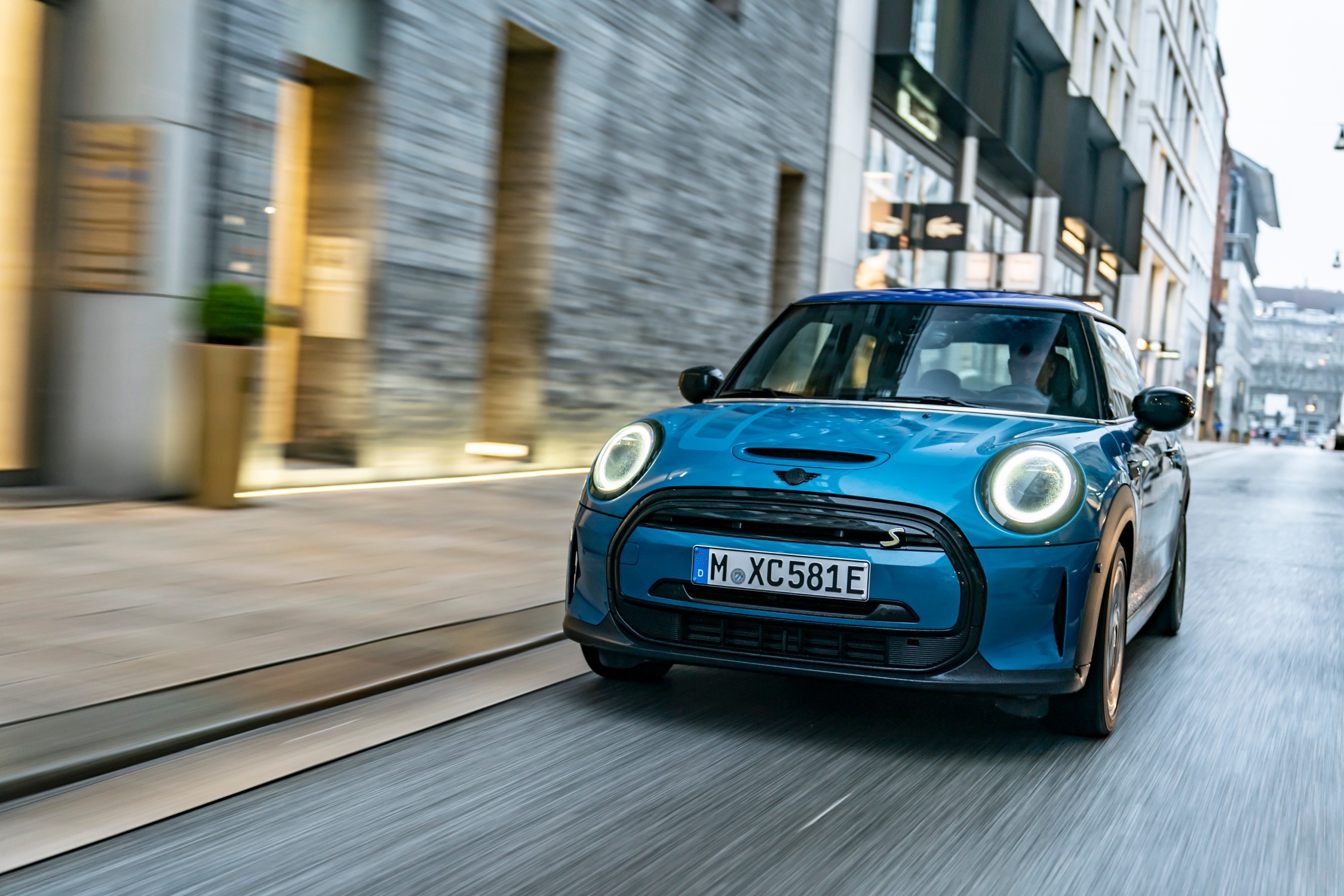 Bestandteil des Fahrerassistenzpakets ist die neue Spurverlassenswarnung, die den Fahrer mit einer Lenkrad-Vibration auf die Gefahr eines unbeabsichtigten Abweichens von der Fahrbahn hinweist. Im neuen Fahrerassistenzpaket Plus ist die Aktive Geschwindigkeitsregelung enthalten, die nun erstmals eine Stop & Go-Funktion umfasst. Damit ist das System in der Lage, den MINI Cooper SE bei Bedarf bis in den Stillstand abzubremsen. Anschließend genügt ein kurzer Tritt aufs Fahrpedal, um ihn erneut in Bewegung zu setzen und die automatische Tempo- und Abstandsregelung weiter zu nutzen. So erhält der Fahrer vor allem bei stockendem Verkehr eine wirksame Unterstützung und kann, solange der Fahrspaß vorübergehend eingeschränkt ist, stattdessen einen gesteigerten Fahrkomfort genießen.