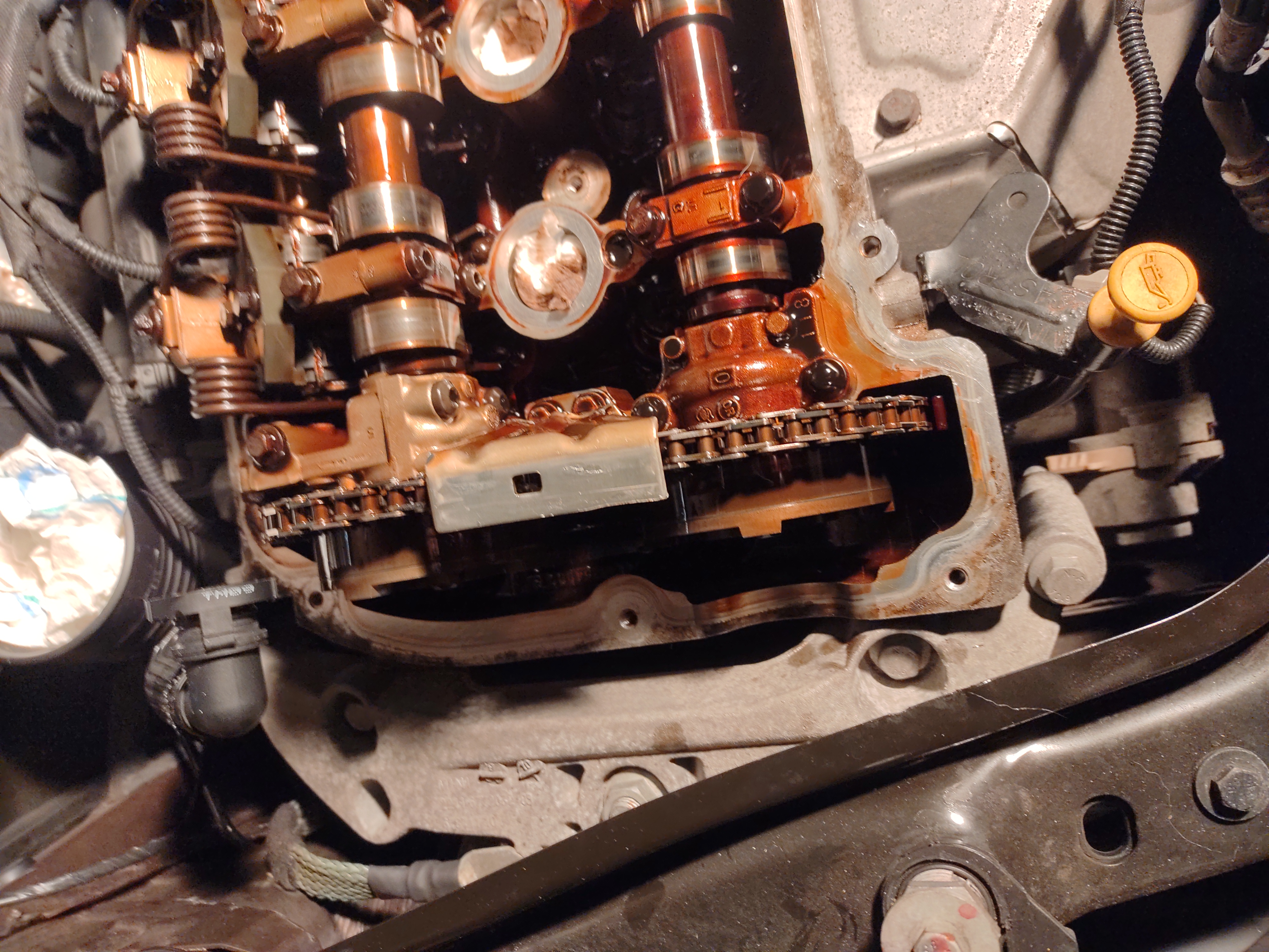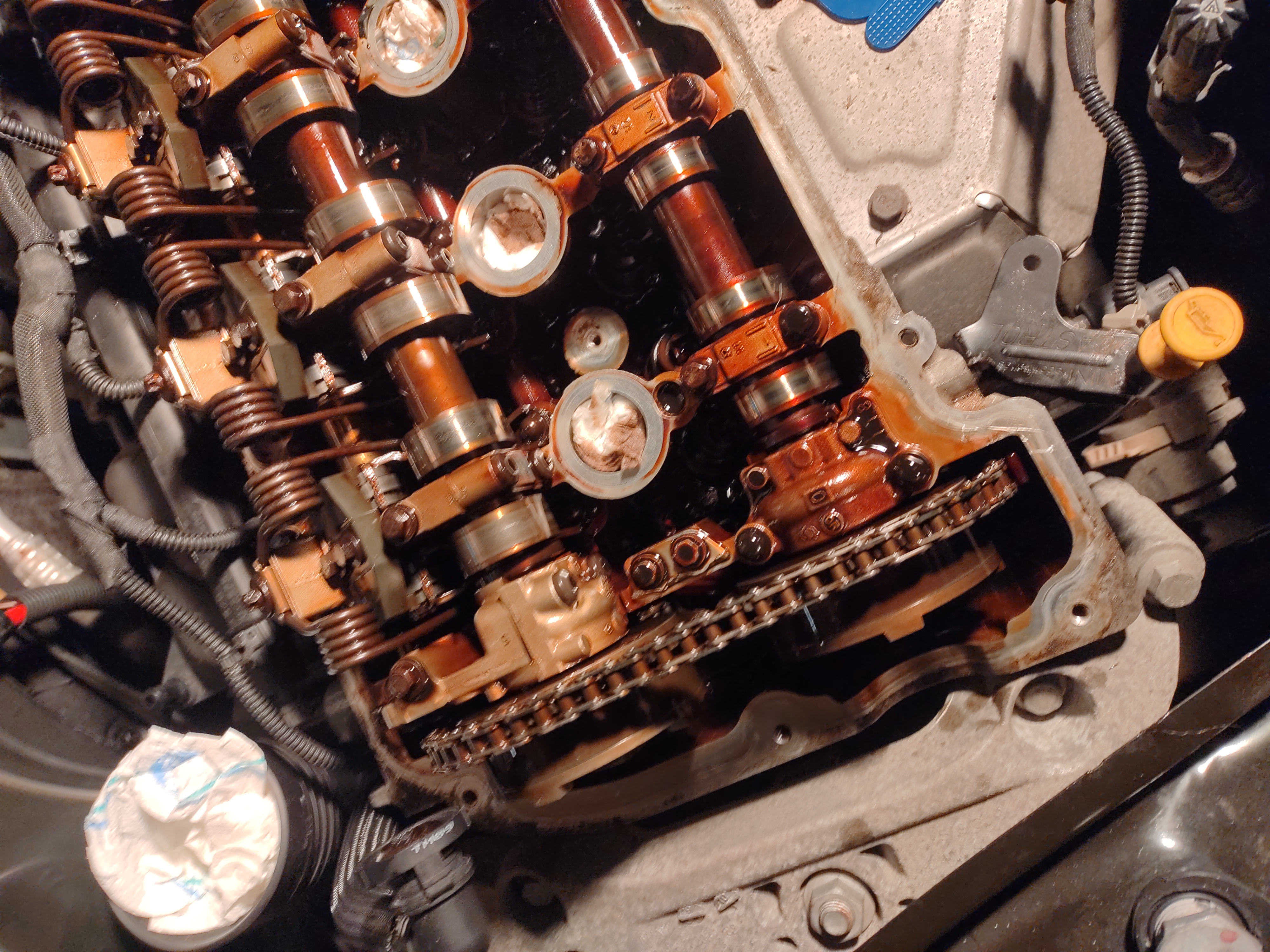 Es begab sich zur jener Zeit, da hatte der Mini immer wiederkehrende Probleme, dass er nur auf drei Zylinder lief, also schaute ich mir die Zündkerzen alle an, und wechselte alle aus, da ich nicht wusste, wann der letzte Wechsel war. Ich habe dieses Fahrzeug gebraucht gekauft. Was ich aber sehr schnell bemerkte, dass auf Bank 1, die Zündkerze über dem Gewinde verölt war, also machte ich den ganzen Schacht sauber und hoffe, dass es sich damit erledigt hatte. Dies hielt keine 2 Monate an und das Theater fing von vorne an. Da ich die Kerzen schon gewechselt hatte, wusste ich warum das Auto wieder einmal auf 3 Zylinder lief. Ich bestellte Zylinderkopfhaube ( Dichtungssatz), bis die Dichtung zur Abholung bereit war, was einen Tag dauert, nutze ich die Zeit, das Fahrzeug dafür vorzubereiten und holte die Kerze aus Schacht Nr. 1 wieder raus, und machte sie sauber, da sie wieder komplett verölt war und setzte sie wieder rein. Jetzt beginnen meine Probleme. Ich wollte das nur 2 Meter bewegen, da es nicht richtig stand und beim Starten knallte es auf einmal, wodurch ich sofort den Motor abschaltete. Was ich vorne am Motor sofort feststellen konnte, das die Zündspule von Bank Nr. 1 mit samt Kerze drin, ohne Gewinde, oben drauf lag. Der Dichtungssatz kam und ich wechselte ihn bzw. wollte ihn wechseln, aber was ich dann sah, machte mich rasend, Bilder füge ich bei.