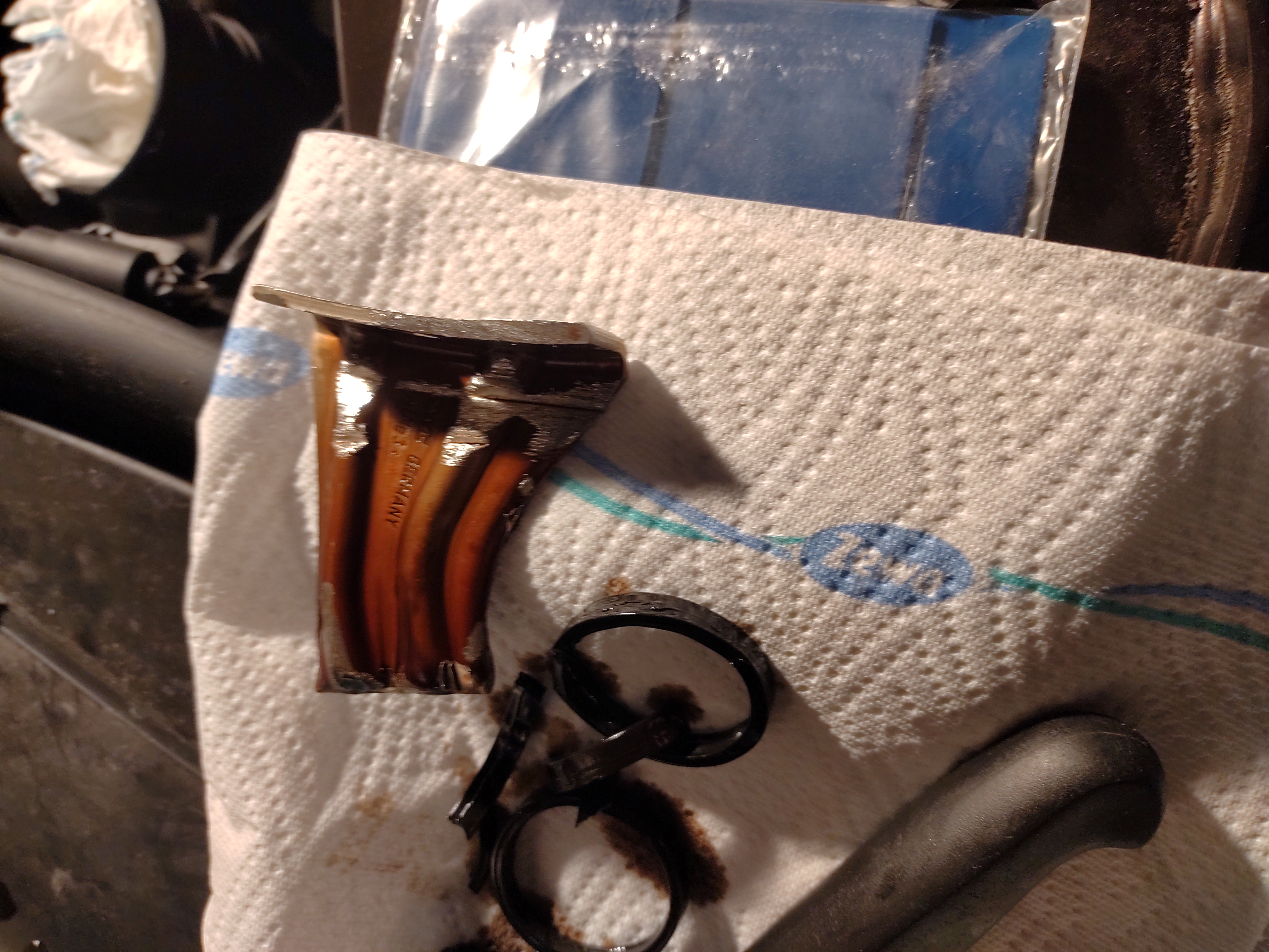 Das abgebrochene Metallstück, was zur Steuerkette drauf gehört, muss natürlich wieder dahin und liegt in der Bestellung. Habe dann wieder alles zusammen gebaut, nachdem ich das Gewinde von der Zündkerze draußen hatte, und baute selbstverständlich eine neue Kerze ein. Ich wollte testen, ob jetzt alles wieder geht, aber das Fahrzeug wollte nicht anspringen und springt auch nciht an. Ich habe mir mal die restlichen 3 Kerzen angeschaut, die ich mit dieser Reparatur nicht ersetzt habe, da ich dies nicht für nötig hielt. Diese Kerzen sind rabenschwarz.