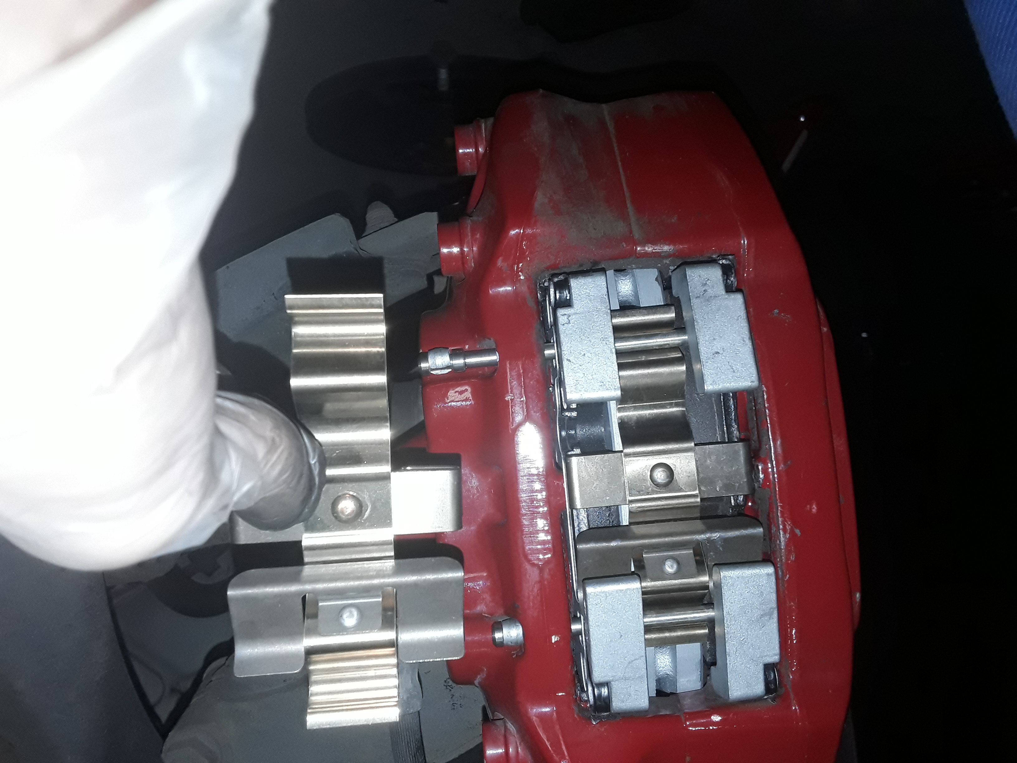 Ich hatte die dünn auf die Führungsbleche, geschmiert. dort wo der Belag eingelegt wird.