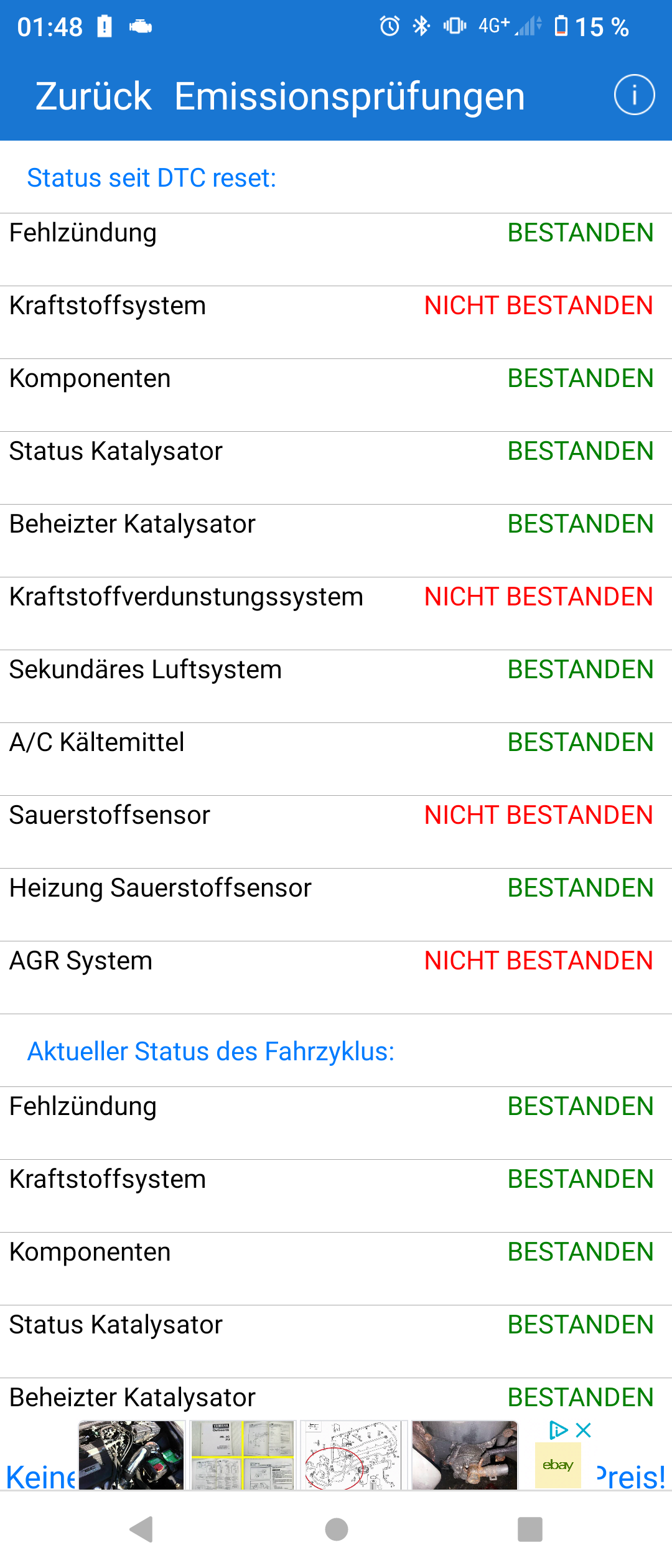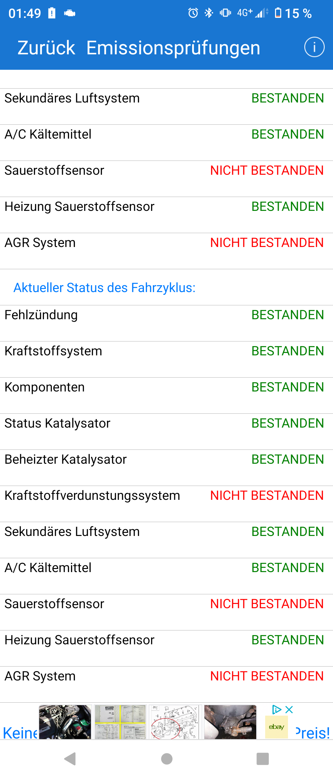 Bei den unten angehängten Screenshots handelt es sich um den Auszug was im Steuergerät zur Emissionsprüfung abgelegt ist.