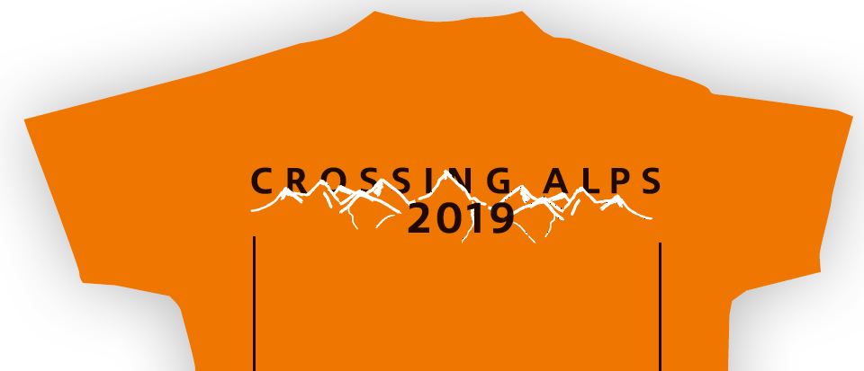 Zur Veranschaulichung der erste Druckentwurf aus 2019. Das Jahr wird für CROSSING ALPS 2023 natürlich noch geändert!