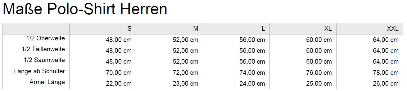• Polo-Shirt Herrenschnitt (PH) gibt es von S - 3XL