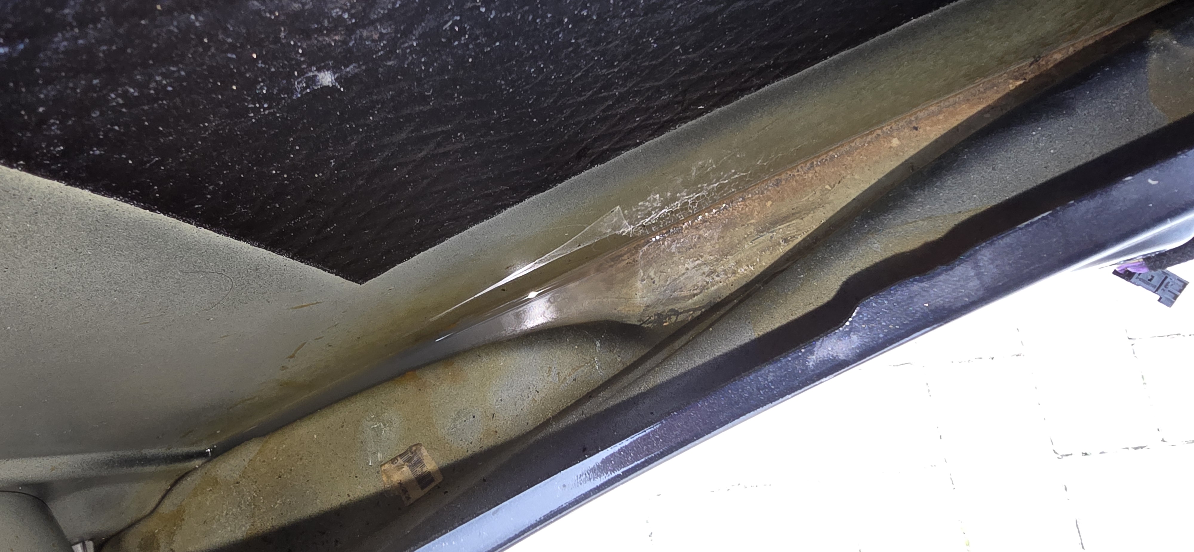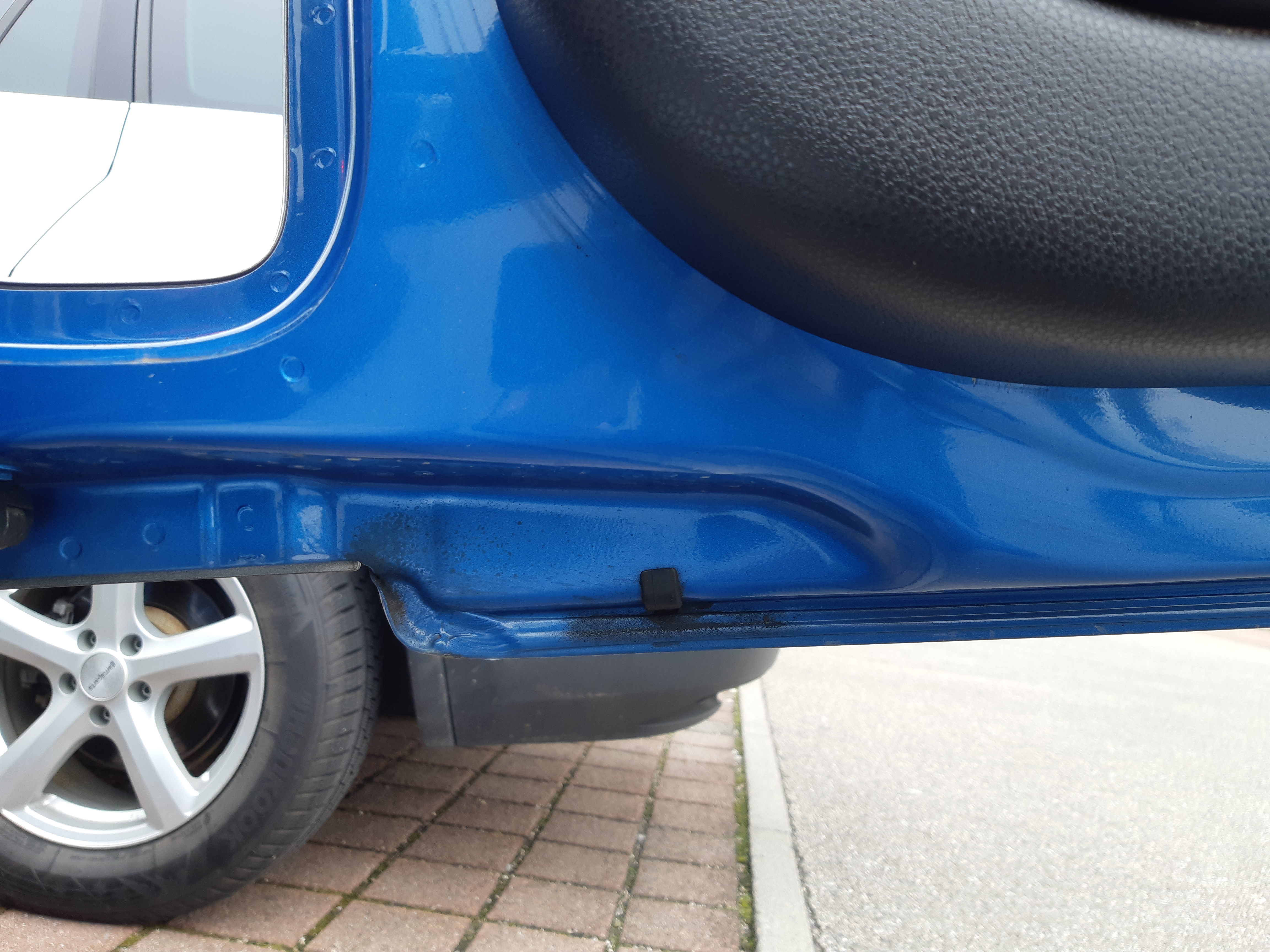 Prinzipiell würde ich aber erst einmal reinigen, die Innenseite (bis auf das Loch) mit Holraumzeug etwas besser versiegeln (sozusagen innen in den Falz rein, das sieht ja schon etwas gammelig aus).