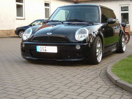 Bei dem Schwarzen Mini handelt es sich um das originale BMW Aero-Kit mit zusätzlich schwartz lackierten Radläufen.