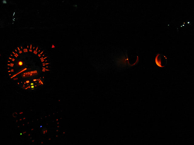 @koenigcooper: Blau ist es deshalb nich, weil es ja während der Fahrt zusammen mit der Armaturenbeleuchtung leuchtet. Da hätte blau nich gepaßt. Blau hab ich ja bei der Innenraumbeleuchtung, die ist meist an, wenn die Armaturen aus sind.