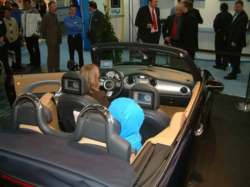 Am ersten offiziellen Messetag stehen am Intel-Stand in Halle 2 die Fernsehteams Schlange. Grund ist aber nicht etwa der wieder einmal schnellste Prozessor der Welt oder eine andere Intel-typische Innovation. Es ist ein kleiner Mini Cooper, der alle Kameraobjektive auf sich zieht.