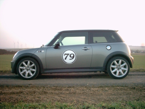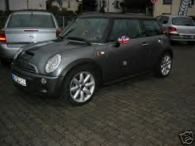 Glaube auch eher das die siber/schwarze Union jack, viel besser zu deinem Mini passen würde, mit ein paar Chrom Spiegelkappen... Also wäre eher meine Geschmack...